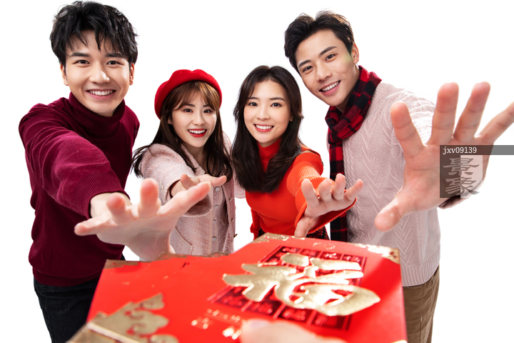 图片标题: 青年男女拿红包