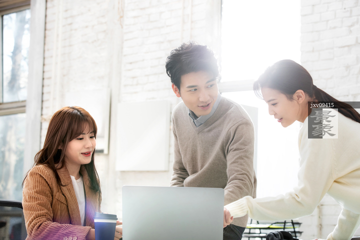 图片标题: 青年商务人士在工作室讨论工作