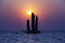 图片标题:     中国江苏省淮安市洪泽湖帆船风光