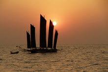 图片标题: 中国江苏省淮安市洪泽湖帆船风光