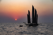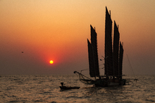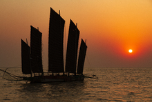 图片标题: 中国江苏省淮安市洪泽湖帆船风光