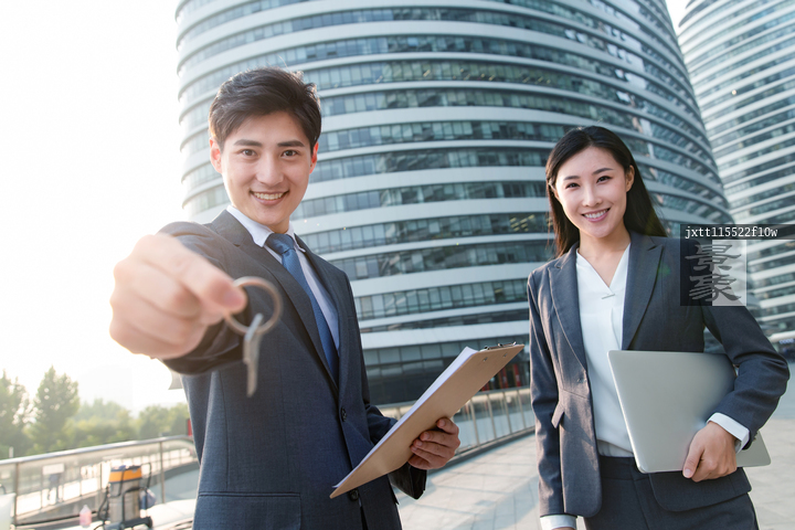 图片标题: 青年销售人员拿着钥匙