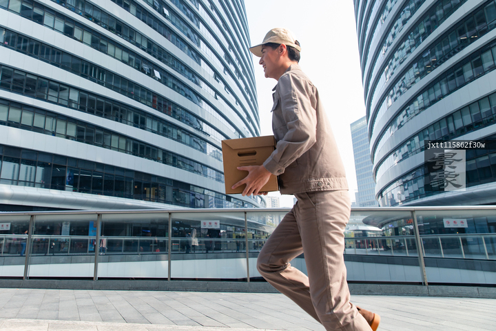 图片标题: 拿着包裹奔跑的快递员