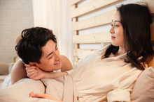 图片标题: 新婚夫妇在卧室里共享甜蜜时光