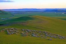 图片标题: 呼伦贝尔草原河湾牧场暮色
