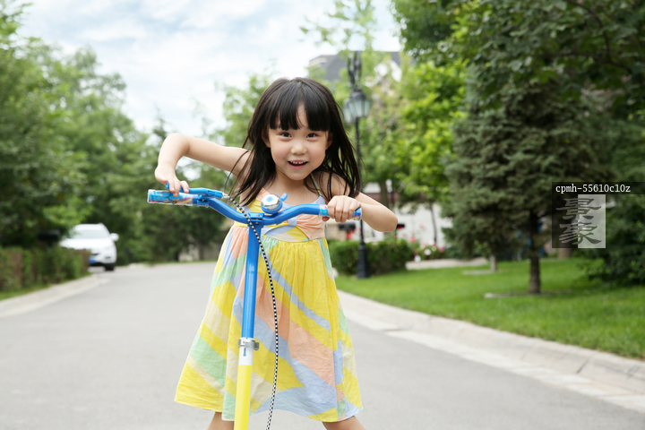 图片标题: 快乐的小女孩骑滑板车