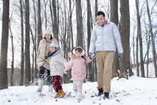 图片标题: 一家三口在雪地里堆雪人