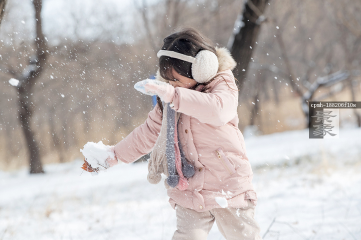 图片标题: 快乐的小女孩在雪地里玩耍