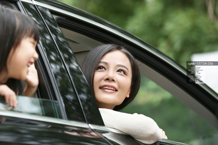 图片标题: 幸福家庭驾车出游