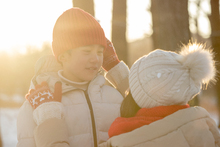 图片标题: 年轻妈妈和孩子们在雪地里玩耍