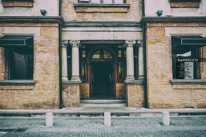 图片标题: 上海城市建筑逆光特写