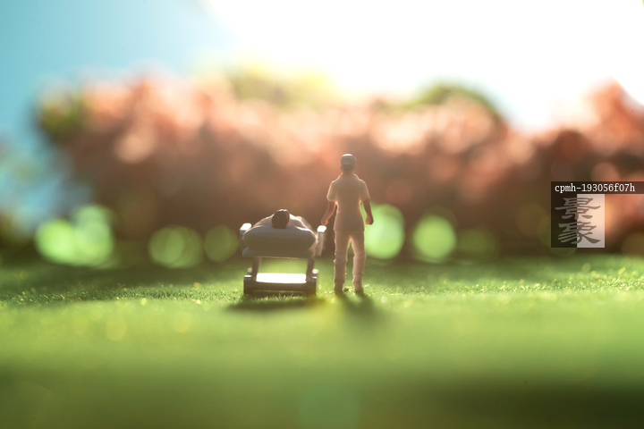 图片标题: 阳光下护士陪着病人赏樱花