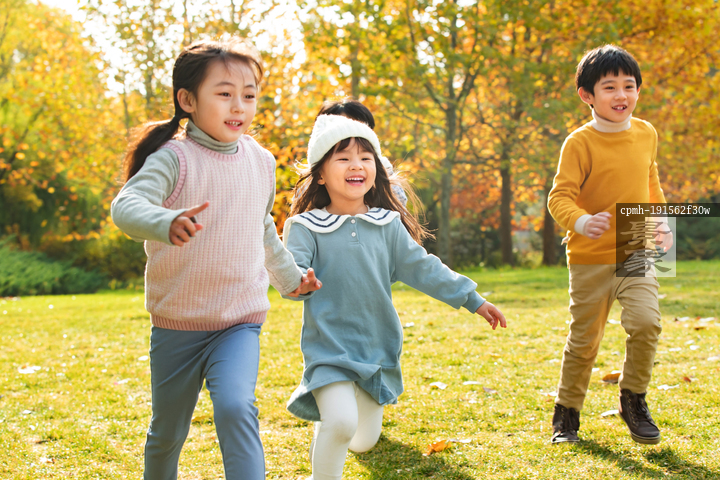 图片标题: 欢乐儿童在公园里奔跑玩耍