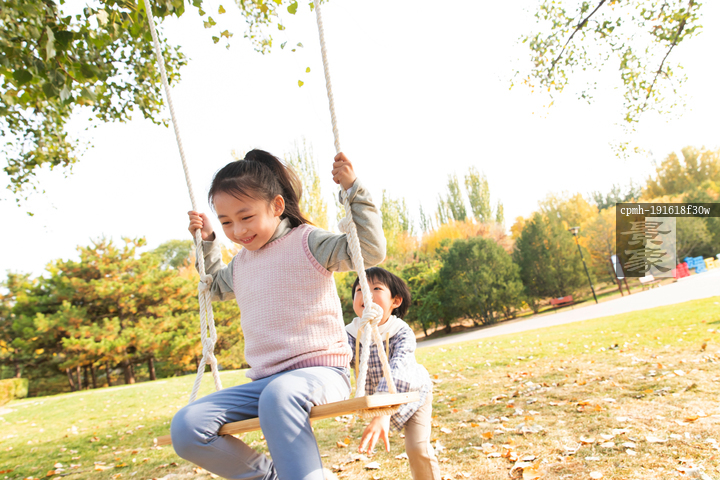 图片标题: 在公园里荡秋千的快乐儿童