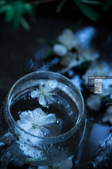 图片标题: 玻璃杯中的桃花