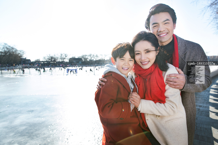 图片标题: 快乐的一家人在滑冰场