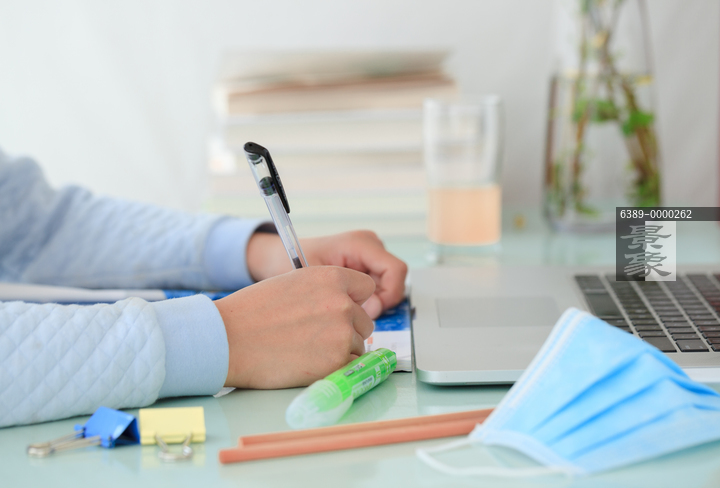 图片标题: 男孩在家学习