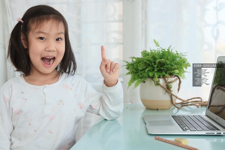 图片标题: 一个女孩在家学习