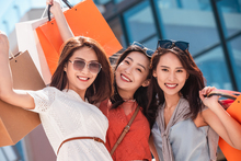 图片标题: 拿着购物袋的青年女人回眸一笑