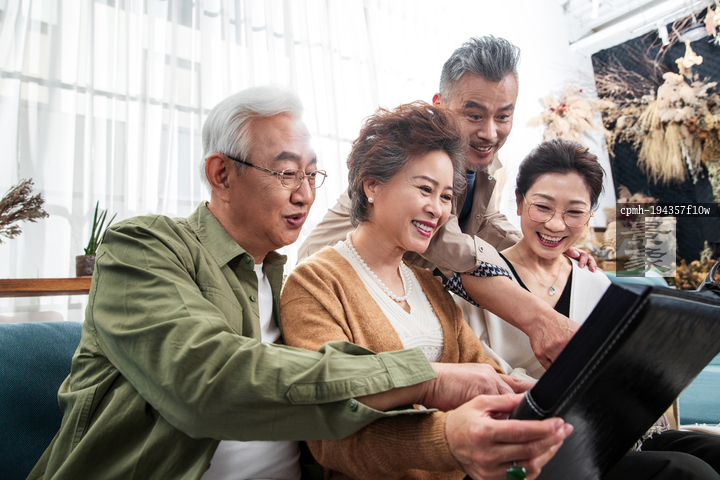 图片标题: 快乐的中老年人一起看相册