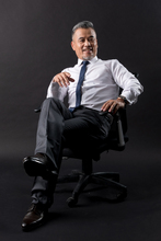 图片标题: 户外拎着公文包打电话的商务中老年男子