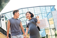 图片标题: 丈夫陪着怀孕的妻子逛街购物