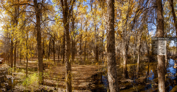 图片标题: 金塔沙漠胡杨林水中倒影
