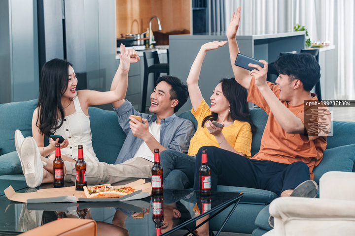 图片标题: 兴奋的青年朋友欢呼庆祝