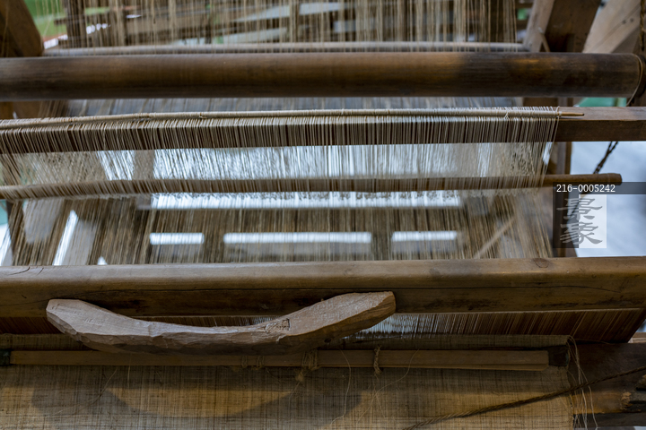 图片标题: 重庆荣昌县夏布小镇展示夏布生产工艺