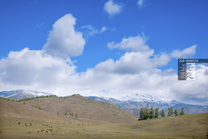 图片标题: 新疆布尔津县贾登峪镇旁草场牛羊群