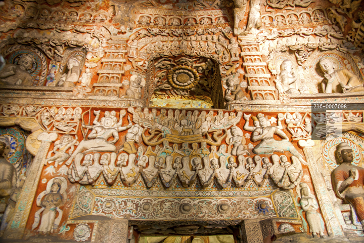 图片标题: 山西大同云冈石窟石窟群佛殿内的精美佛像
