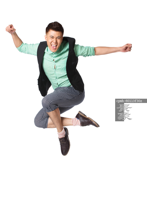 图片标题: 跳到半空中的青年男人
