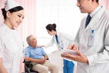 图片标题: 医生和老年人交谈