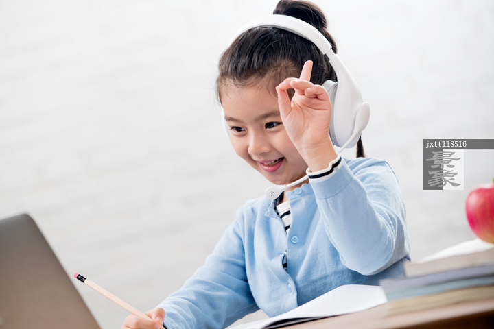 图片标题: 小学女生在线学习