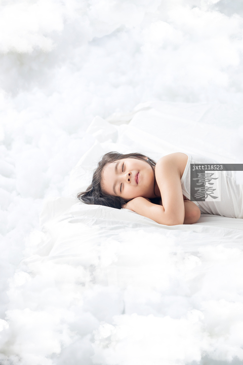 图片标题:     可爱的小女孩躺在云朵上