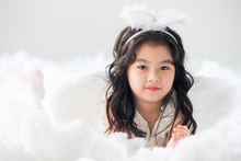 图片标题: 可爱的小女孩躺在云朵上