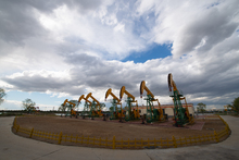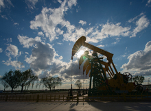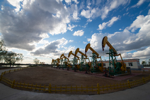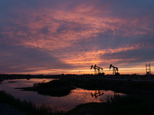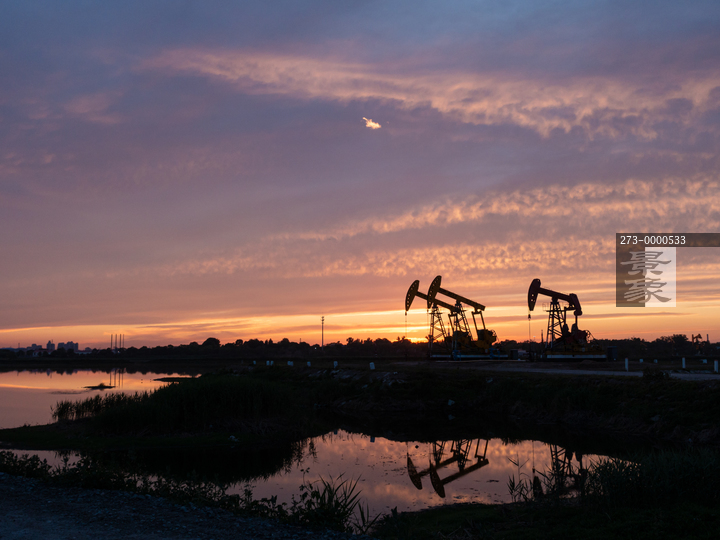 图片标题: 晚霞中的采油树