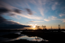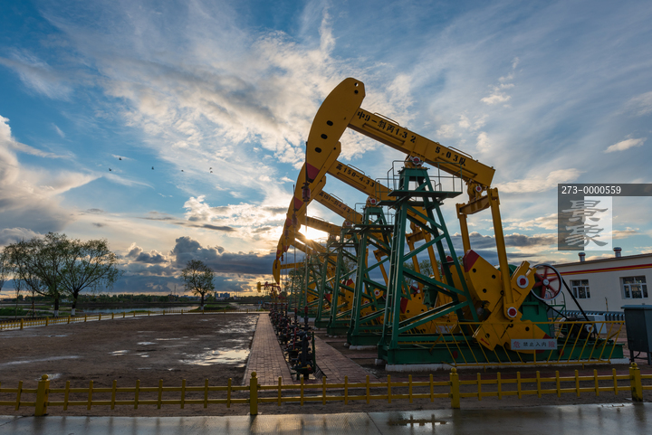 图片标题: 晚霞中的采油树