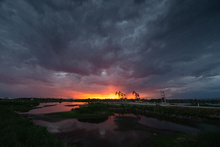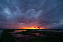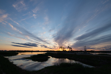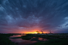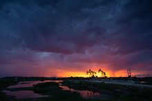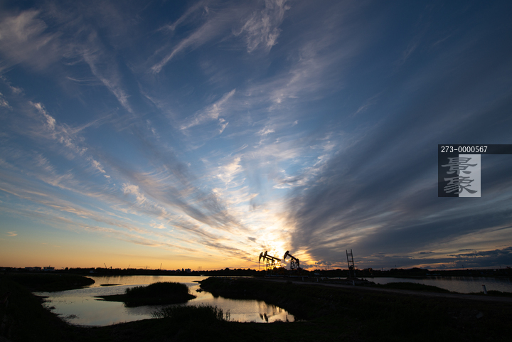 图片标题: 晚霞中的采油树