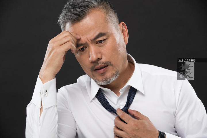 图片标题: 皱着眉头的中年商务男士肖像