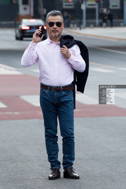 图片标题: 戴墨镜的中年男士打电话