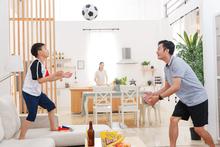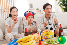 图片标题: 一家三口在家看球赛