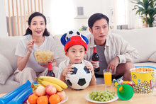 图片标题: 一家三口在家看球赛