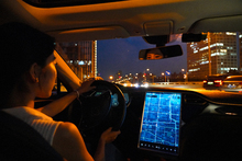 图片标题: 青年女人边开车边语音聊天