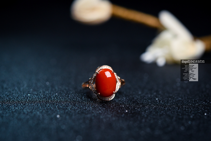 图片标题: 红珊瑚戒指特写