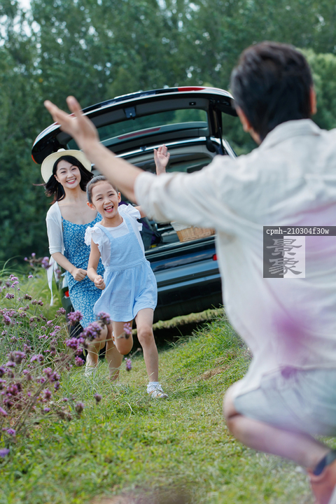 图片标题: 快乐的小女孩奔向爸爸