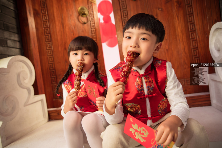图片标题: 吃冰糖葫芦的可爱男孩女孩