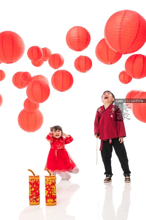 图片标题: 新年放爆竹的欢乐男孩女孩