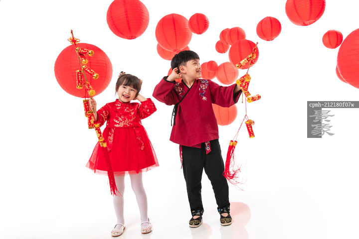 图片标题: 新年放鞭炮的欢乐男孩女孩
