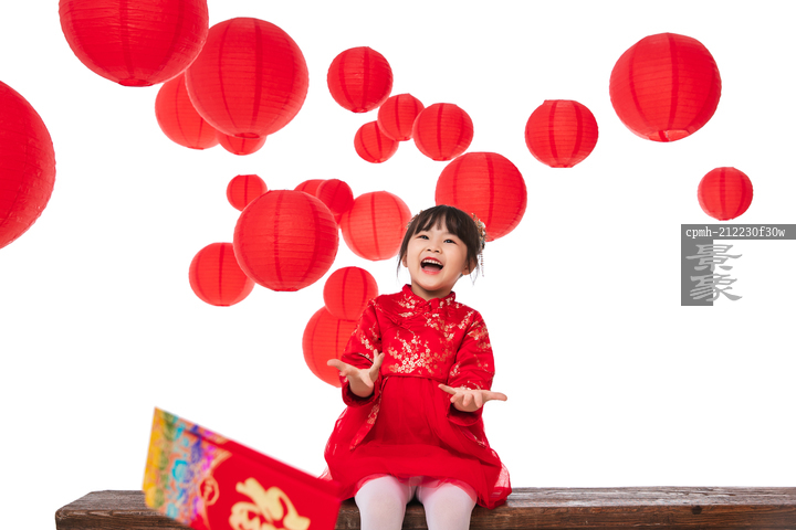 图片标题: 红灯笼下兴奋的小女孩